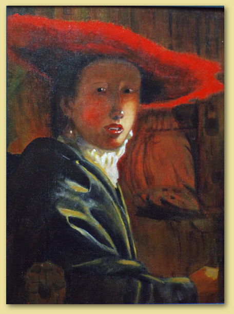 Repainting of Vermeers "Girl with a Red Hat" / Acrylic paint on canvasboard / 30x40cm / 1996 /